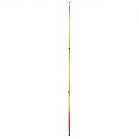 Телескопическая штанга из 3 секций с поворотным наконечником в форме крюка на конце. Материал: штанга – стекловолокно, наконечник – алюминий. Длина в сложенном состоянии – 1,2 м. Длина в разложенном состоянии от 1,2 до 3 м. Допустимая нагрузка на наконечник – 5 кг. Электроизоляция до 30 кВ. В комплект входит сумка-чехол для транспортировки и хранения штанги.