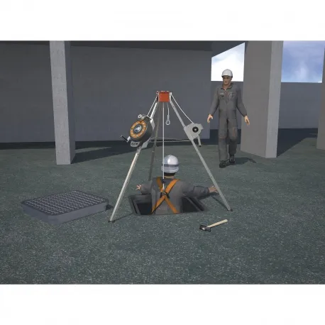 Ручная лебедка с тросом из оцинкованной стали. Грузоподъемность лебедки – 300 кг. Длина троса – 30 м, диаметр – 5 мм. Складная ручка. Крепится к триподам TRA20 и TRA30 с помощью переходных кронштейнов.