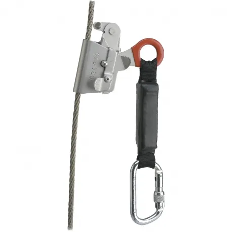 Средство защиты от падения ползункового типа для вертикальной анкерной линии из стального троса 8 мм. Состоит из: 1) съемный захват с автоблокировкой (нержавеющая сталь; 2) амортизатор; 3) стальной карабин AM002.