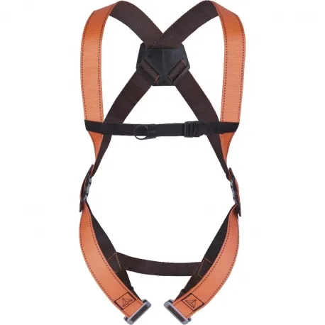 Привязь с 1 точкой крепления для защиты от падений сзади (на спине). Материал лямок – полиэстер. Регулировка привязи осуществляется с помощью 2 пряжек на ножных лямках, 2 регулировочных пластин по бокам и пряжки на грудной лямке. Испытана на 140 кг.