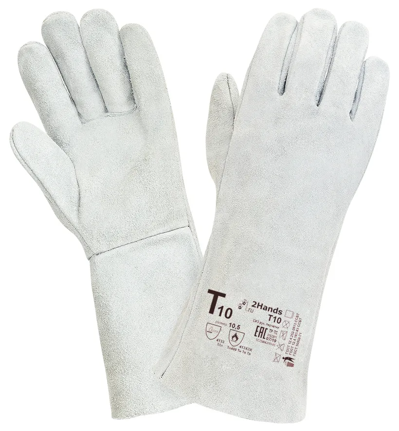 Перчатки сварщика (краги) 2Hands (Ту Хэндс) спилковые для защиты от механических воздействий и повышенных температур. Перчатки пятипалые без подкладки. Спилок КРС сорта АВ (1,5 +/-0,2 мм), высокая толщина кожаного материала и обработка, обеспечивающая сохранение мягкости спилка в течение длительного времени хранения, с 2022 года: швы Кевлар . Перчатки изготавливаются из высококачественного спилка спинной части шкур и прошедшего предварительный отбор. Перчатки обеспечивают высокую механическую защиту, защиту от повышенных температур - открытого пламени, искр и брызг расплавленного металла. Размер 10,5.