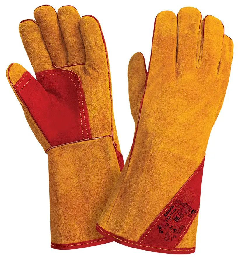 Особопрочные перчатки сварщика (краги) "Сибирь" T12-11-ru 12,5 для защиты от механических воздействий и повышенных температур из цельного спилка, пятипалые, с подкладкой из брезента и хлопка, длиной 350 мм (+10/-5мм), широкой манжетой и большим размером. Реальный размер перчатки - 12,5 - это самый большой размер, который мы предлагаем на рынке. В сегменте перчаток сварщика и для работников металлургической промышленности нередко работают люди с большим размером руки. Наши перчатки полностью решают все проблемы обеспечения людей, с любым размером руки, качественными средствами защиты. Кроме того у перчатки специальная конструкция расширенного манжета для использования в зимнее время — широкий манжет позволяет заправлять рукава зимней одежды в крагу, а размер 12,5 позволяет применить дополнительную перчатку в качестве утепляющего вкладыша или защитного (например 7500 обеспечит дополнительную защиту как от повышенных, так и от пониженных температур).