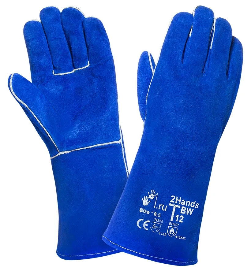 Перчатки сварщика (краги) спилковые T12 BW изготовлены из специально обработанного спилка сорта АВ, средняя толщина спилка не меньше, чем у базовой перчатки Т12 (1,4 +/-0,2 мм), но при этом спилок более мягкий, что обеспечивает высокую чувствительность и подвижность пальцев, обработка обеспечивает сохранение мягкости спилка в течение длительного времени хранения, усилены вставками из кожи, используется специальная упрочненная нить. Перчатки изготавливаются из высококачественного спилка спинной части шкур, прошедшего предварительный отбор. По ЕН 420 (удобство манипулирования) степень свободы движений для перчаток - T12 Base Wall (BW) выше, чем у базовой Т12 (+1). Материал подкладки аналогичен базовой Т12 - хлопок в кистевой части и льна (брезента) на манжете, но подкладка полностью сшита по периметру, что создает дополнительный комфорт. Перчатки для защиты от механических воздействий и повышенных температур 2Hands - T12 Base Wall это более сложный дизайн базовой перчатки Т12, рекомендуются как защитное средство рук при проведении длительных сварочных и подготовительных (механическая обработка) работ. Большая толщина спилка, который используется для T12 Base Wall, и большой вес, обеспечивают хорошие показатели защиты, а мягкость и гибкость перчатки снижают утомляемость рук и позволяют осуществлять точные операции. Размер 10,5.