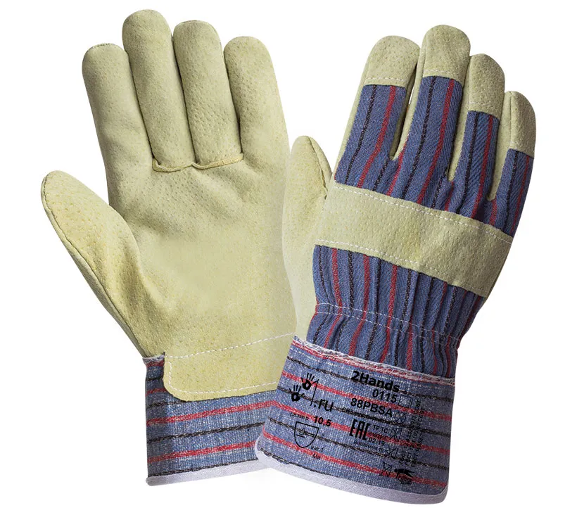 Перчатки Хватка комбинированные, х/б ткань со свиным спилком, крага - х/б. Спилок свиной, сорт АВ (1,0 +/- 0,2 мм), желтого цвета, однородный и комфортный. Применяются для защиты от истирания и ОПЗ во всех сферах промышленности, сельского хозяйства и строительства для защиты от механических воздействий при нагрузках средней и низкой интенсивности, среди базовых перчаток обладают наивысшим комфортом. Размер 10,5.