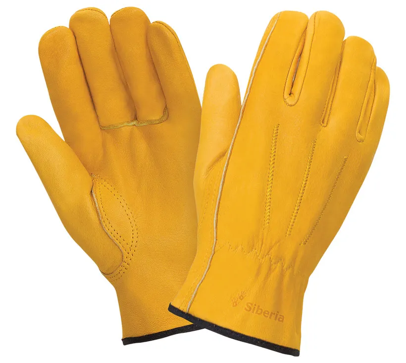 Перчатки Сибирь Пер 014 для защиты от механических воздействий из кожи КРС желтого (золотого) цвета специальной селекции для серии СИБИРЬ, без подкладки. Кожа КРС из спинной части шкур молодых телят, мягкая и растяжимая при значительной толщине 1,6 мм (+/– 0,2), сорт А+, специальная обработка кожи, в том числе, создает высокий комфорт при контакте перчатки с кожей руки. На запястье резинка, двойные швы. Перчатки обеспечивают высокий комфорт, тактильную чувствительность и удобство манипулирования, высокий уровень защиты от истирания и разрыва, хорошие показатели защиты от пореза и прокола. Перчатки рекомендованы для продолжительного ношения, могут быть использованы для проведения общих работ для защиты от механических воздействий в отсутствии жидких загрязнителей, таких как масло, водные растворы и тд, для защиты рук от ОПЗ, истирания, при работе с инструментом для ИТР. Размер 10,5.