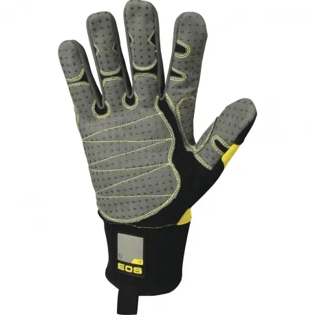 Трикотажные перчатки с защитными накладками. Манжета длиной 8 см из неопрена с регулировкой объема при помощи контактной ленты. Дополнительные гибкие рельефные накладки из неопрена на тыльной стороне перчатки и пальцах. Дополнительные защитные накладки из ПВХ с точечным покрытием: между большим и указательными пальцами и на ладонной части. Перчатки прошиты кевларовыми нитками. Максимальная устойчивость к истиранию; высокая устойчивость к порезам, разрывам. Устойчивость к ударному воздействию в области запястья.