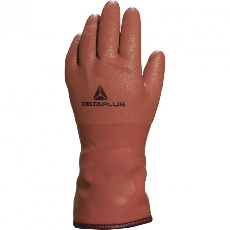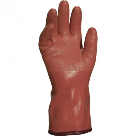 Утепленные перчатки ПВХ на хлопчатобумажной трикотажной основе «джерси». Утеплитель – акриловая подкладка. Длина – 30 см. Толщина - 1,3 мм. Рельефная поверхность на ладони. Перчатки водонепроницаемые и воздухонепроницаемые. Высокая устойчивость к истиранию. Устойчивость к воздействию масляных, химических средств и нефтепродуктам.