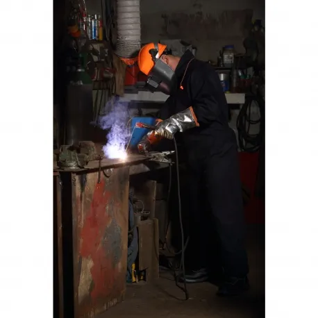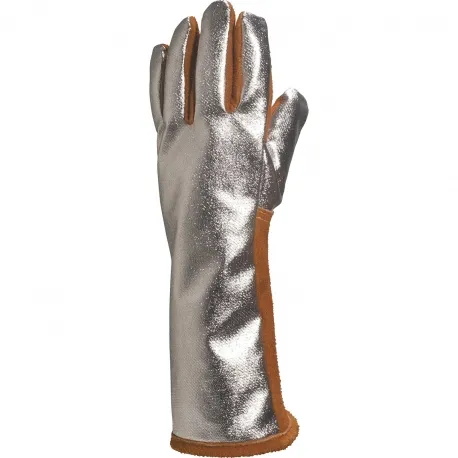 Перчатки-краги сварщика комбинированные на шерстяной подкладке. Ладонная часть – жаропрочный кожевенный спилок. Тыльная сторона – алюминизированный материал Kevlar Preox®. Общая длина перчатки – 40 см, манжеты – 20 см. Швы прошиты прочной огнестойкой нитью Kevlar®. Американский покрой. Высокая устойчивость к истиранию, разрывам, проколам. Высокая устойчивость к воспламенению, конвективному теплу, тепловому излучению, большому выбросу расплавленного металла.